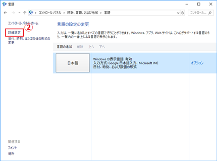 コントロールパネルから①入力方法の変更を選びます。